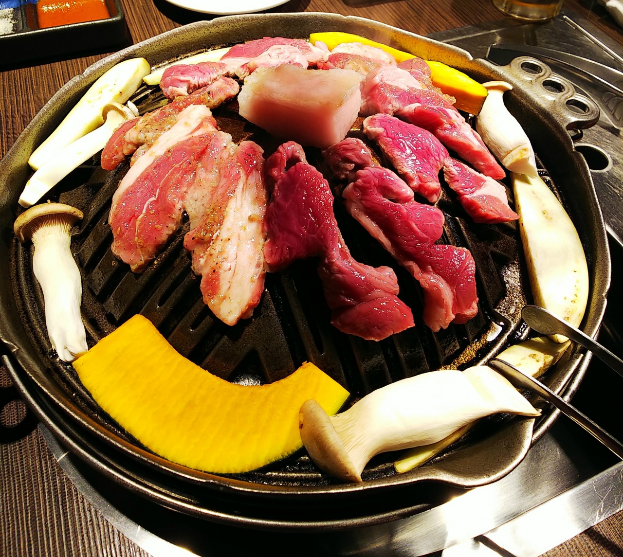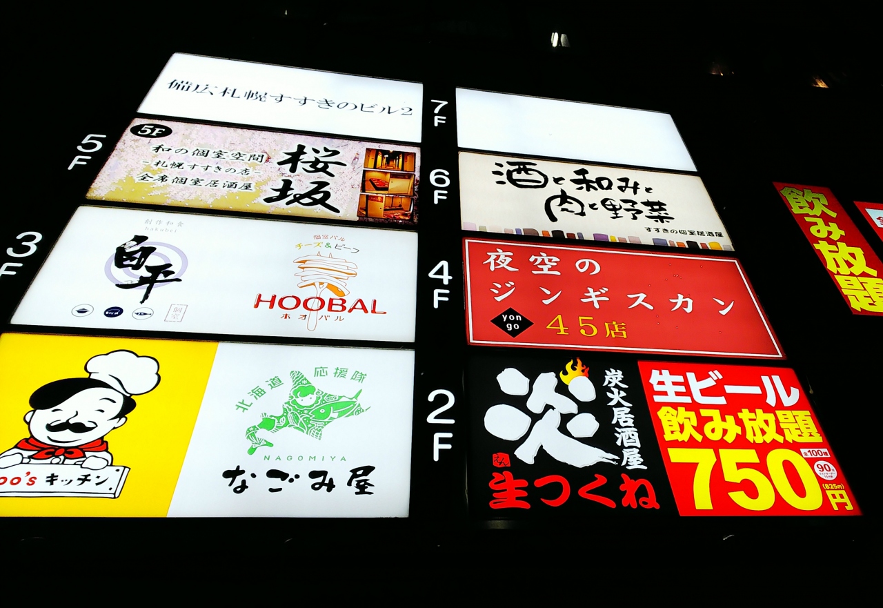 すすきのは、45ビル4階に入っている「夜空のジンギスカン」さんで夕飯です。ここも、地元の方おすすめのお店なので、期待が高まる~♪(笑)お一人様¥4200で、2種類のジンギスカンとサイドメニュー食べ放題&飲み放題が付いているコースにしました!生ラムは柔らかくてジューシー♪塩だれラム肉は、旨味がスゴイ!サイドメニューは、サラダやキムチもオーターして…食べ放題・飲み放題なので じゃんじゃんお代わりしちゃいます(*´艸`*)〆は、ゆずシャーベッでお口の中スツキリ♪(^o^) お腹はちきれそうなくらい食べて飲んで、大満足でございました