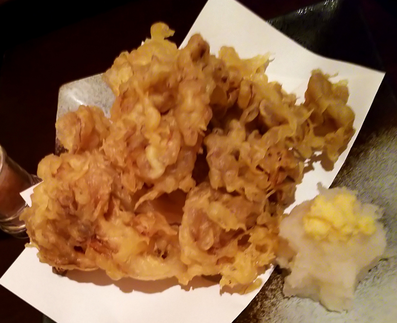 店員さんに本日のおすすめを聞くと「トロカツオの刺し身」と「舞茸の天ぷら」とのこと。つまみはその両方を頼み、ほかに鴨の刺し身・タコの唐揚げなどオーダー。乾杯はビールで、その後サワーを頼んで…お代は一人¥3000ほどでした。刺し身は新鮮で臭みはなったくなく、天ぷらはサクサク、期待していなかった分(失礼)美味しかったです。- 旅行時期