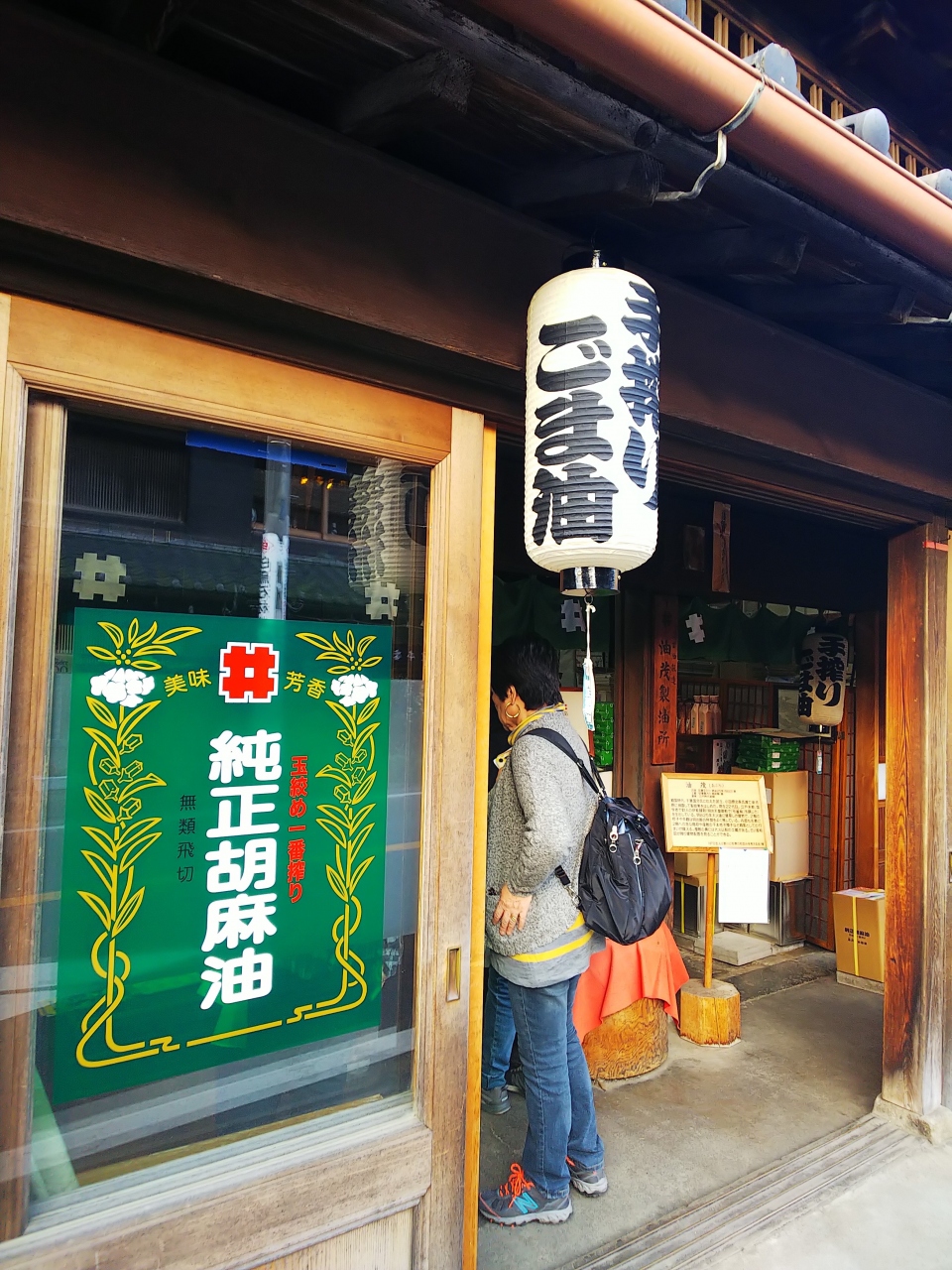 お土産屋さんが軒を連ねる通り沿いにありました。ここのラー油とゴマ油は絶品です!