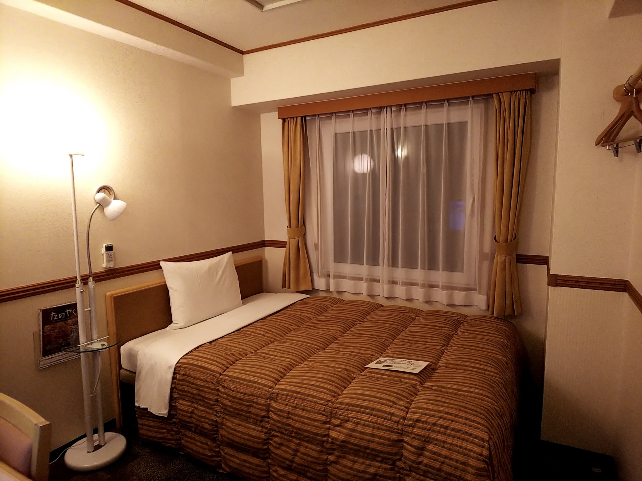 禁煙シングルルームに泊まりましたが、どこのルートインもアメニティや作りは一緒です。ここも、「旅人の湯」という名の大浴場があります。無料朝食は、併設のレストランで。品数は多くないけど、一応バイキングです。他のルートインに比べ、おかずの種類は多めでした。その代わりに、シリアルとヨーグルトがなかったかな。まぁ、過不足なくコスパのいい、安定のルートインでした。- 旅行時期