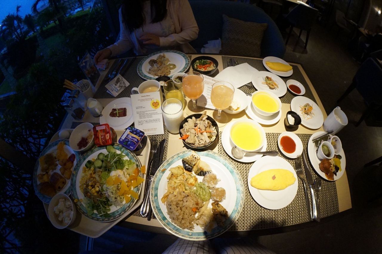 モツが入ったスープや海ブドウなど沖縄らしい食べ物が並んでいました。ブッフェ形式なので、挑戦することが出来ました。