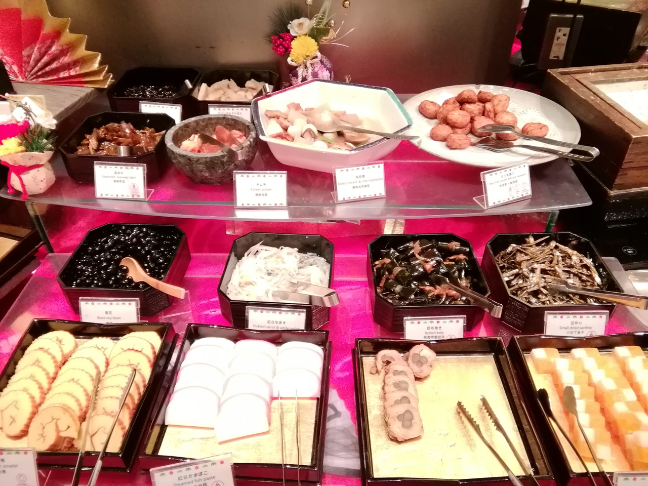 ここのラウンジはオススメ!アフターヌーンティーの時間にはサンドイッチ、スコーン、チョコレート、クッキーがありました。1月3日のカクテルタイムには、数の子や昆布巻きなどお正月らしいものがありました。- 旅行時期