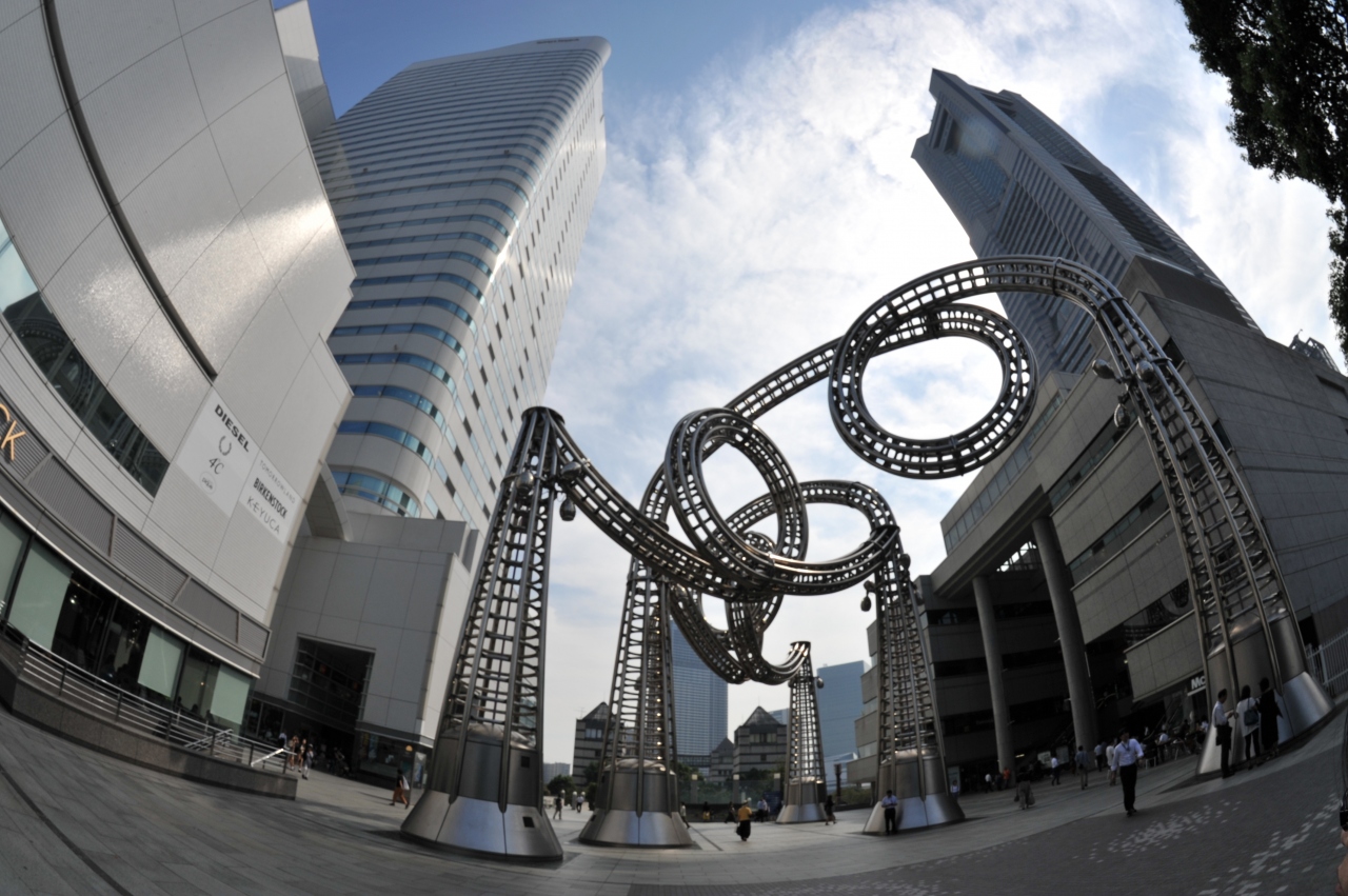 ランドマークタワーのショッピング施設と、クイーンズスクエアの間にあります。くねくね、と曲がった芸術作品です。待ち合わせ場所、として使っている人も何人か居ました。鉄のシルバー色が“未来”を象徴しているように感じました。