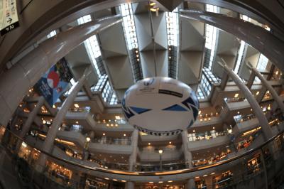 横浜インターコンチネンタルに宿泊した時、こちらでショッピングを楽しみました。ラグビーのワールドカップが開催されている期間だったので、建物中央部あたりに風船のような大きいラグビーボールが吊るされていました。