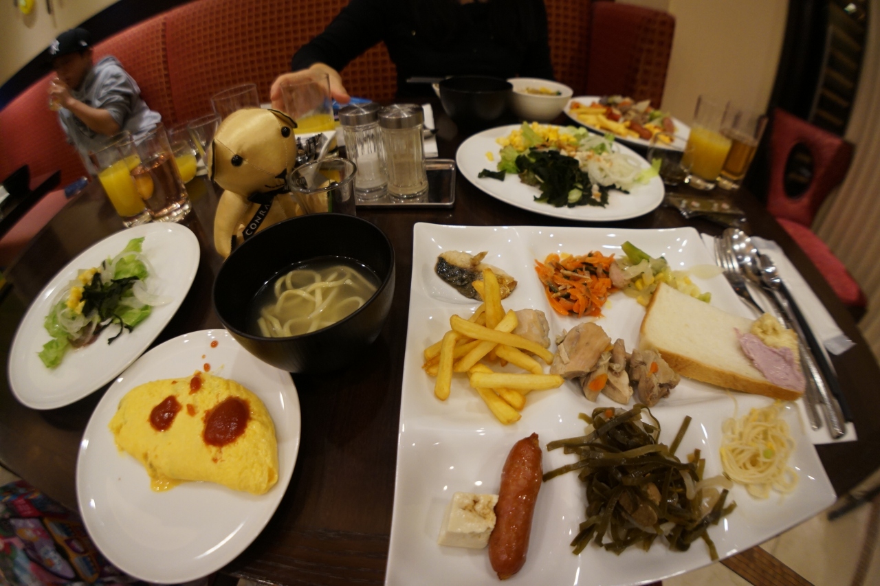 こちらのレストランで、ウェルカムドリンク券を使ってお酒を頂き、朝食バイキングを頂きました。同じ場所なのに、こうも雰囲気変わるんだ~、と驚きました。