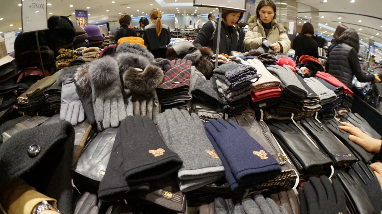 急遽、新世界百貨店に手袋やウールの帽子などを買いに行きました。