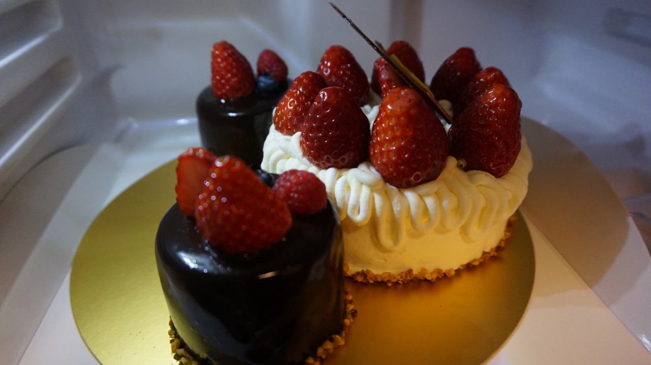 3日前までに予約が必要なミッキー型のお誕生日ケーキを購入しました。ひとつ5000円程度とちょっとお高い値段設定。前からずっと気になっていたので値段はあまり考えないようにして買っちゃいましたー!ケーキが入っている紙袋はミッキー、ミニー、ドナルドなどディズニーキャラクターがデザインされていました。チョコレートケーキの大きさは2~3人で食べれる程度の大きさです。残らなくて丁度良いサイズです。いちごもチョコレートのネームプレートも美味しかったです。