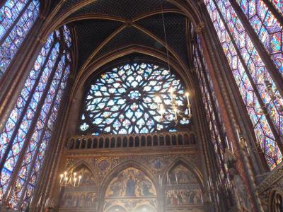 大変な人でかなり混雑が予想されると聞いていたので朝9時頃着くようにホテルを出たのですがメトロが途中で止まり降ろされるというアクシデントがありodeonから歩いたためかなり着くのが遅くなりました。コンシェルジュリーに先に行ってペアチケットを購入するつもりでしたが思っていた以上に空いていたため殆ど待ち時間なく入場できました。2階へ上がると見事なステンドグラスを見る事ができます。日本語の解説書も置いているので読まれる事をお勧めします。人もまばらだったためゆっくり椅子に腰かけて解説書を読みながら美しいステンドグラスを楽しむ事ができました。- 旅行時期