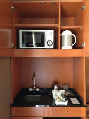 また、ブボンプレッサーの他に、アイロンアイロン台、ミニキッチン(電子レンジ付き)と長期滞在に向いたお部屋だと思います。