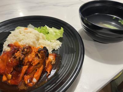 さて、出国前の腹ごしらえと行きましょう!空港内のフードコートにて、チキ...