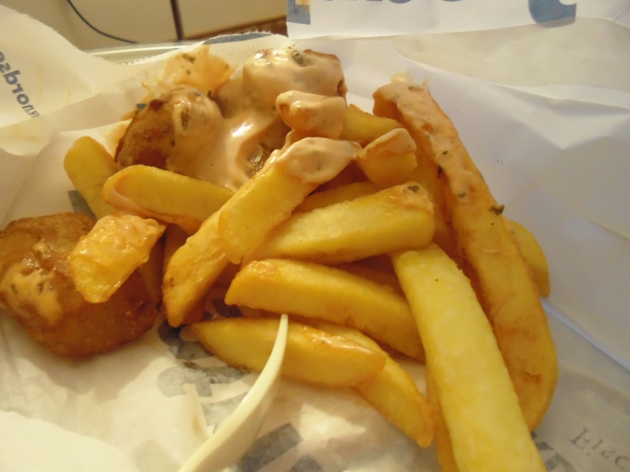 「フィッシュ&チップス」は注文してから揚げてくれるので アッツアツで食べることが出来ました。(Demelに近いほうの支店です。)