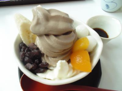 私が注文した「ほうじ茶パフェ」・・・これは美味しかった!!!。抹茶パフェも大好きですが、「ほうじ茶」のアイスも美味しいんですね。