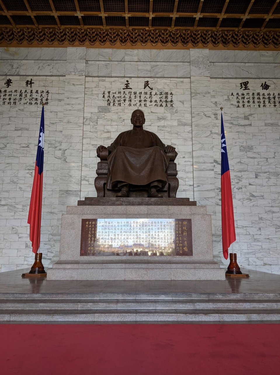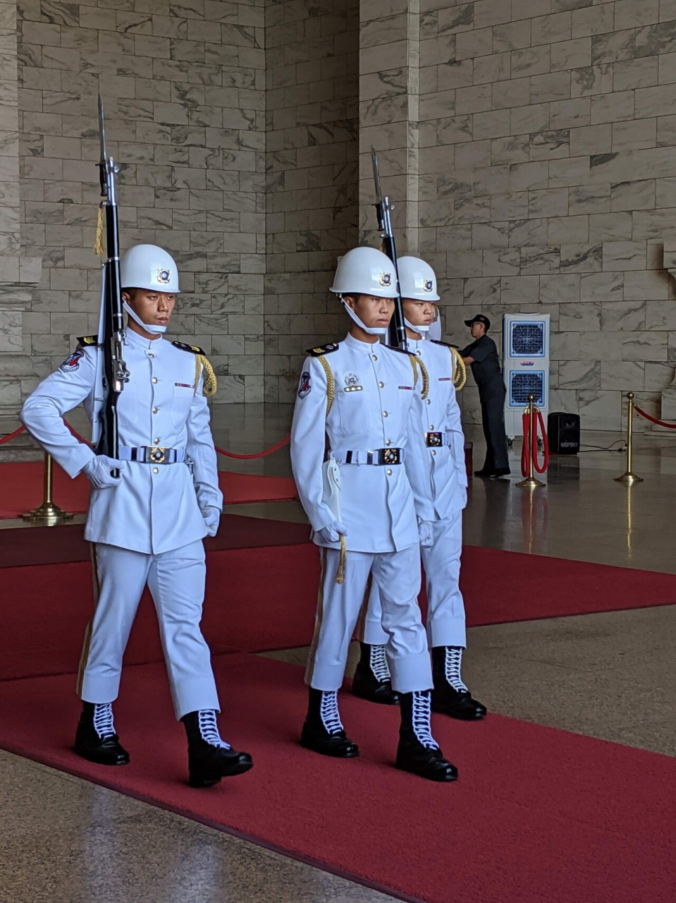 中正紀念堂内の巨大な蒋介石像を警備する衛兵の交代儀式は1時間に1回(正時毎)行なわれます。真っ白な制服(海軍)を着て、表情ひとつ変えずにロボットのような動きをする衛兵の交代儀式は見応えがあって良かったです。