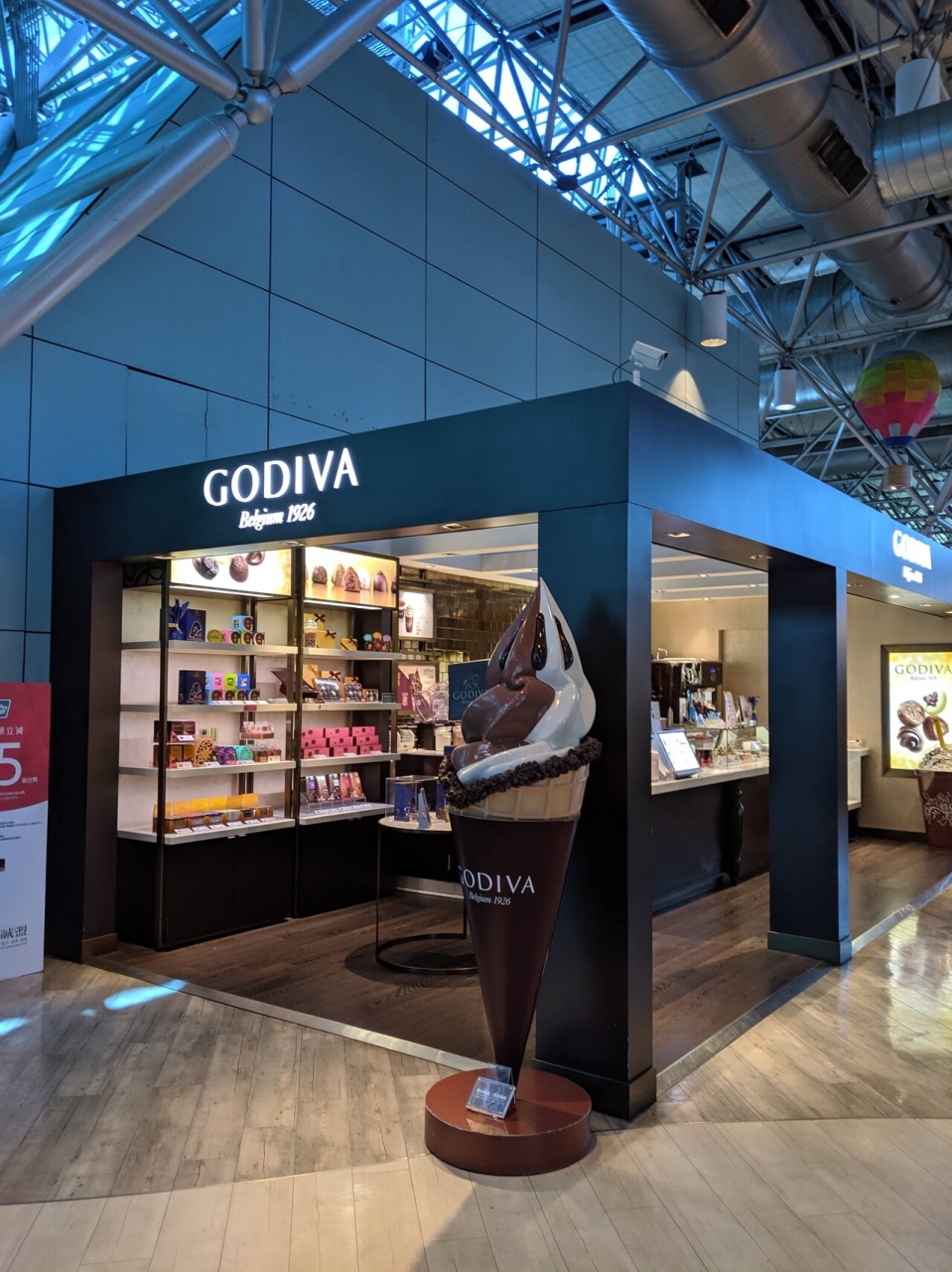 桃園国際空港にあるお店のひとつです。出国手続きをした後の制限エリア内にあるお馴染みのゴディバです。チョコレートのおみやげを買うこともできます。今回は、チョコレートは買いませんでしたが、飛行機の待ち時間を利用してソフトクリームを食べました。濃厚なチョコレートのソフトクリームで美味しかったです。