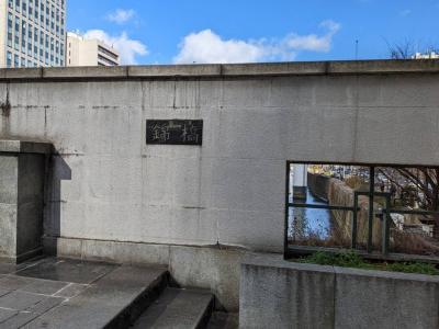 大阪の市街地を流れる土佐堀川に架かる橋のひとつです。以前は可動堰として機能していたようで すが、現在は歩行者専用橋。重厚感のある鉄筋コンクリート造りの橋でしたが、橋上には江戸末期 から明治初期に画かれた橋の錦絵をタイルに焼きつけたものを貼り付けて展示しているので、これらを観ながら散策を楽しむことができました。
