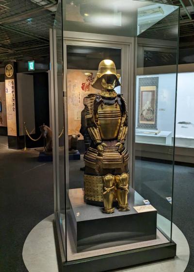 名鉄「東岡崎駅」から歩いて約15分、岡崎公園内にある資料館ですが、NHK大河ドラマ「どうする家康」の放映に合わせてリニューアルしたので、 館内は大河ドラマに関連するパネルや資料などが中心に展示されていました。また、徳川家康が初陣で着用したと言われている黄金の甲冑(レプリカ)は見応えがありました。