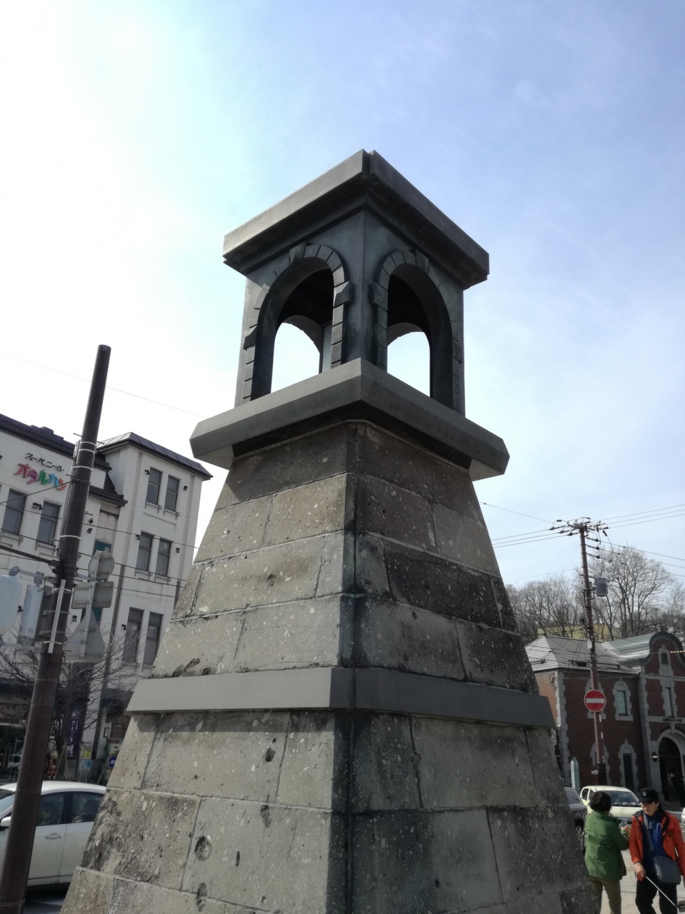 小樽市内で人気の観光スポットのひとつ、堺町通り商店街にありました。LeTAO本店とメルヘン交差点の間の広場にある常夜灯は港町小樽らしい灯台のような形をしているのが特徴的でした。また、この場所は、観光客の人たちがたくさんいる場所なので、記念写真の撮影スポットにもなっていました。