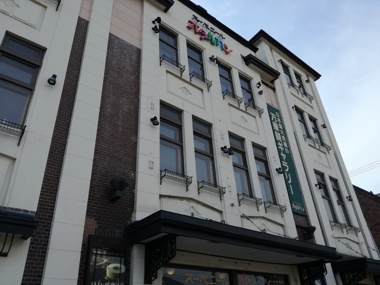 小樽の堺町通り商店街にあるおみやげ屋さんが入ったレトロなビルです。おみやげは、種類、品揃えともに充実しているので、買い物をするならおすすめのお店です。また、重厚感がある建物は、大正時代に造られたものらしく、歴史的建造物にも指定された見ごたえがあるものでした。
