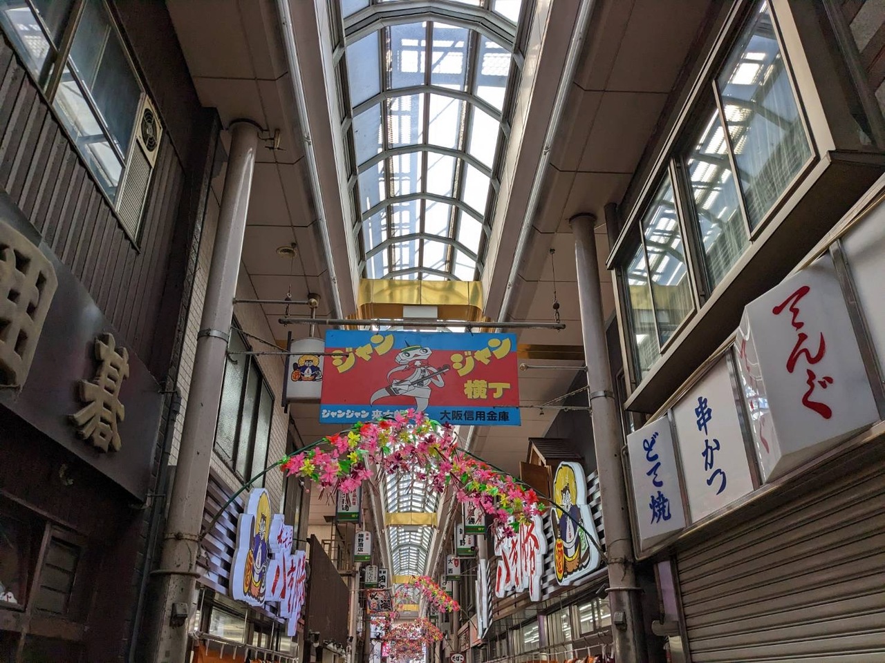 大阪メトロ御堂筋線「動物公園前駅」から歩いて約5分、ディープな大阪の下町「新世界」の一角にある超ディープな通りが「じゃんじゃん横丁」です。アーケード型商店街の通り沿いには、昔ながらの昭和レトロなお店が並んでいましたが、ディープな雰囲気のお店も多く魅惑的でした。