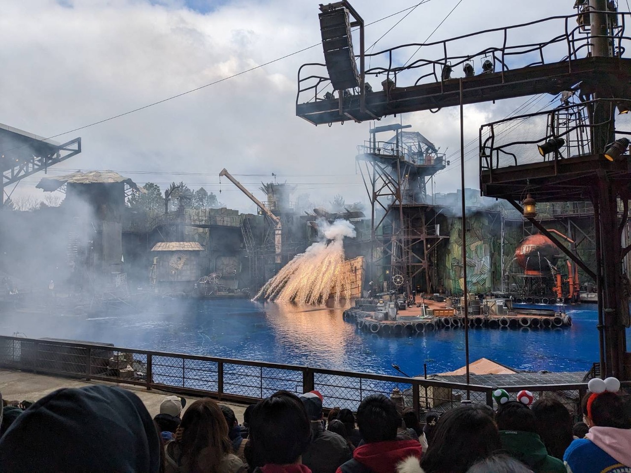映画「ジャラシックパーク」の世界を楽しむことができるアトラクションです。 ボートに乗った時点からシートはずぶ濡れでしたので覚悟はしていましたが、予想通り、クライマックスに25.9mの高さから落下してずぶ濡れになりました。寒い冬ではなく、真夏におすすめのアトラクションでした。