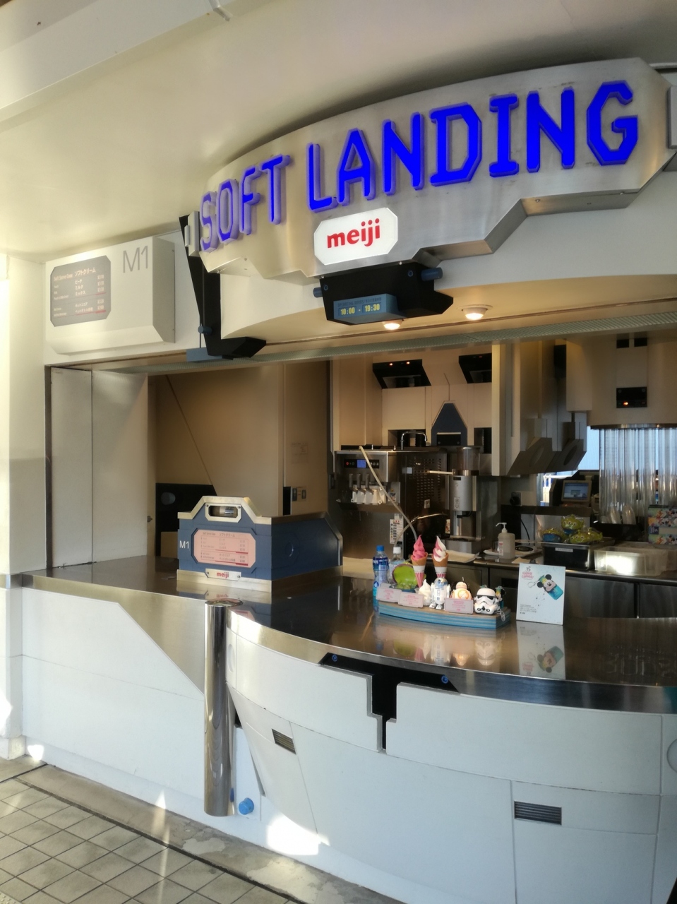トゥモローランドの人気アトラクション「スターツアーズ」の出口から直ぐのところにあるお店です。このお店では、ピーチ味などのソフトクリームを食べることができます。待ち時間もなく、ソフトクリームを買うことができました。ピーチ味のソフトクリームは程よい甘さで美味しかったです。