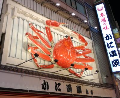 道頓堀川に架かる戎橋の直ぐ近くにある「かに道楽」の本店です。定番の大きなカニのオブジェが飾られているので目立ちます。カニ刺し、カニの天ぷら、焼きカニなどカニ料理を堪能することができるお店です。値段はかなり高めですが、カニ三昧を味わえるので満足しました。