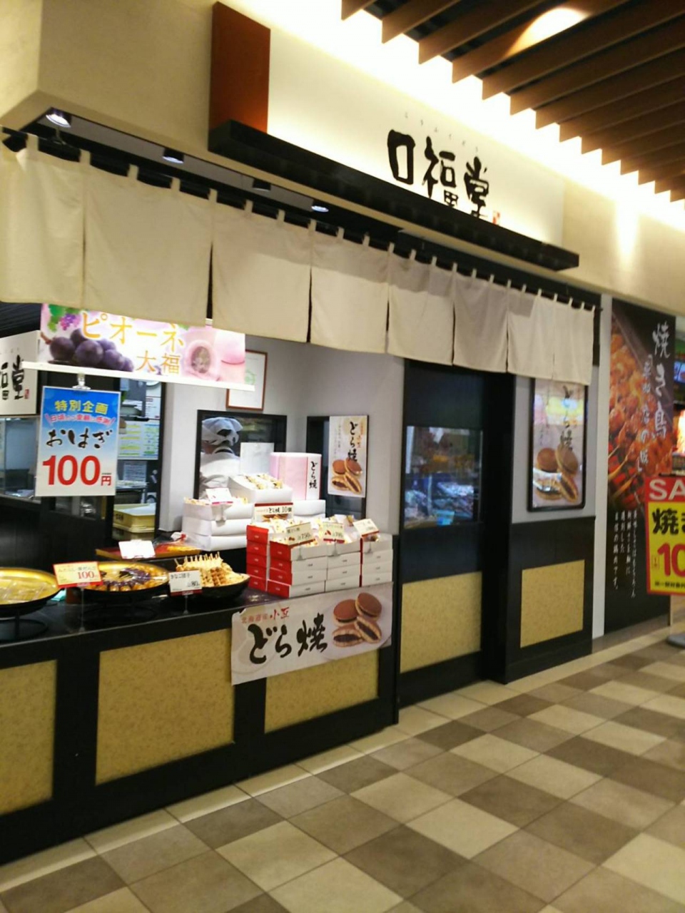 ららぽーとTOKYO-BAYにある「柿安口福堂」です。和菓子の専門店で、みたらし団子、どら焼き、大福などを買うことができます。値段もお手頃で美味しいのでおみやげなどとして買って帰るにはちょうど良いです。この季節だとおすすめは「おはぎ」です。