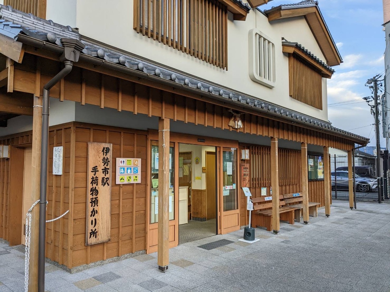 伊勢市駅の改札口を出て左側に少し歩いて行くと「手荷物預かり所」はありました。伊勢神宮の外宮、内宮などはかなり歩くので、参拝前に重い荷物はここで預けるのがおすすめです (1個500円)。 また、レンタサイクルもあるので、自転車で観光地巡りを楽しむこともできます。