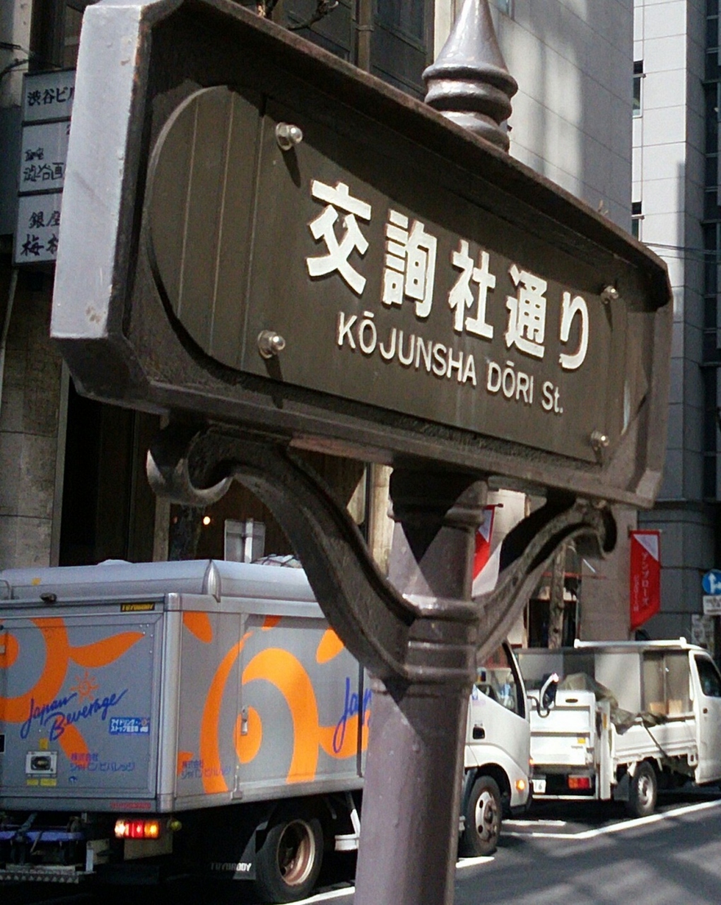 銀座中央通りと外堀通りの間にある通りです。この通りが「交詢通り」と呼ばれるようになったのは、1880年(明治13年)に銀座6丁目において福沢諭吉が政治家や経営者のための日本で最初の会員制社交クラブ「交詢社」を設立したことに由来するものらしいです。通り沿いには飲食店などがたくさんあり、人通りも多く賑わった感じでした。