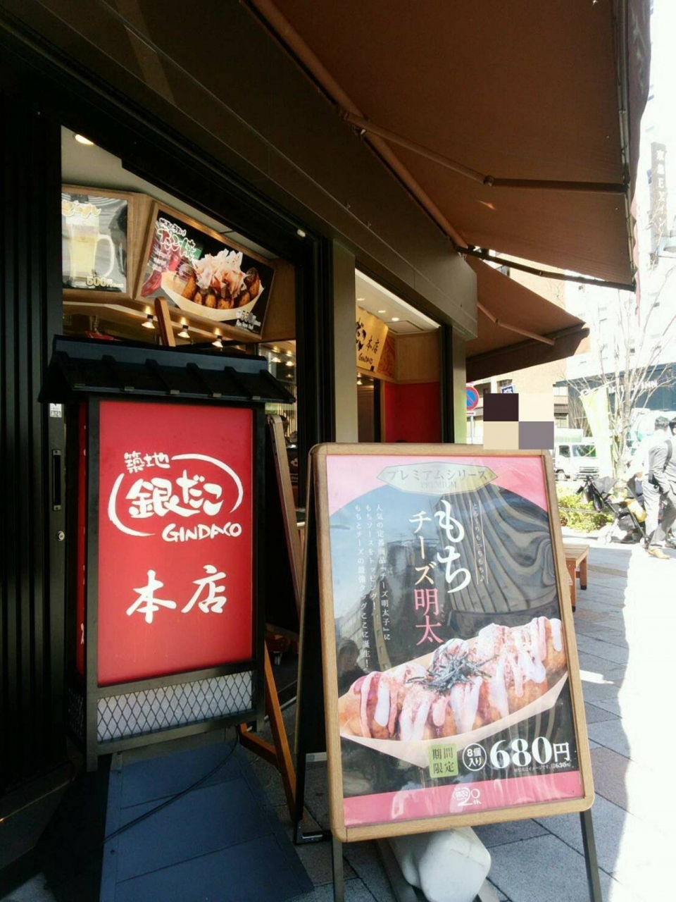 晴海通りと新大橋通りが交わる交差点の一角にある築地銀だこの本店です。築地場外市場とは新大橋通りを挟んだ向かい側にあるお店だけあって、店内は観光客、特に、外国人観光客の人たちで賑わっていました。たこ焼きの種類はたくさんありますが、焼き立てのたこ焼きは外側はカリカリで中身がジューシーで美味しかったです。