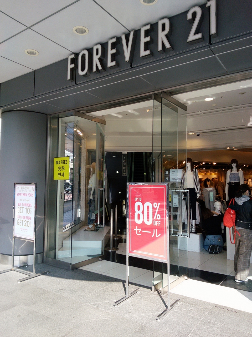 新宿三丁目駅から徒歩5分程にあるカジュアルブランド「FOREVER21」の大型店です。地下1階から地上3階が売り場になっているので、品揃えは充実していました。普段から値段も安いブランドなのでお買い得商品がたくさんありますが、更に、セール中だったので、いつも以上にお買い得商品がたくさんありました。