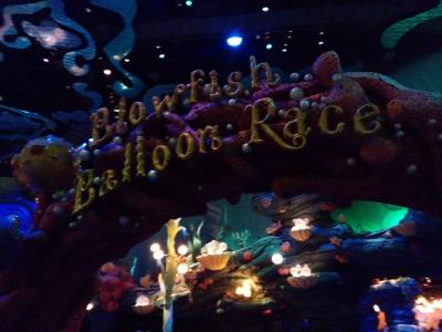 海の中をテ━マにしたエリア(マ━メ━ドラグーン)にあるアトラクションのひとつです。ブローフィッシュ(フグ)の形をしたバルーンに吊り下げられた貝殻に乗ってクルクル空中を回ります。小さい子どもでも楽しむことができるアトラクションなので家族連れにはオススメです。