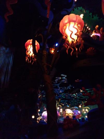 マーメードラグーンにあるアトラクションのひとつです。スタンバイが5分程度とのことだったので乗りました。貝殻に乗りながらジェリーフィッシュ(クラゲ)と一緒に上下にアップ、ダウンするアトラクションですが、所要時間は1分程度とあっという間に終了するので物足りなさが残りました。激しい動きをするアトラクションではないため、小さな子供たちにはオススメです。