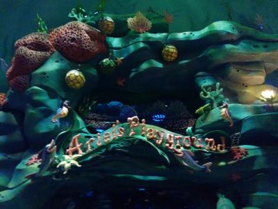 アリエルのプレイグラウンドは、マーメードラグーンにあるアトラクションのひとつです。他のアトラクションとは異なり、待ち時間もなく入場することができるのがとても良いです。また、施設内は結構広く、迷路やアスレチックなどがあるので子供たちにとっては自宅の近くにある公園感覚で遊ぶことができるのでとても人気のアトラクションです。