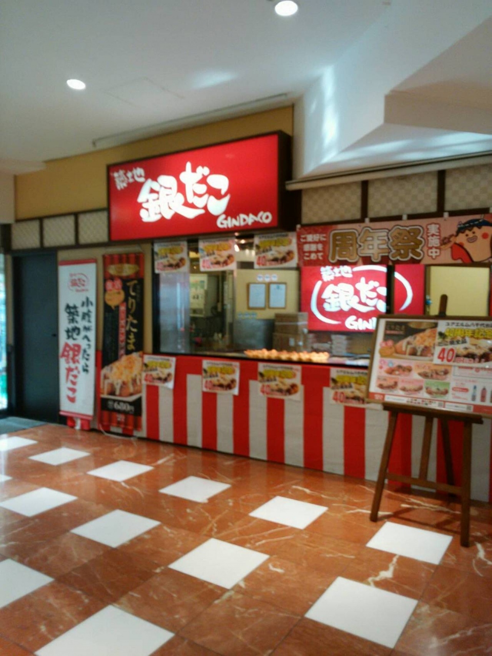 京成八千代台駅に直結のユアエルム(1階)にある「銀だこ」です。ユアエルムの40周年を記念して、たこ焼きが全品40円引きでした。焼きたてのたこ焼きは、外はカリカリで中身はジューシーで、たこも大きく美味しかったです。