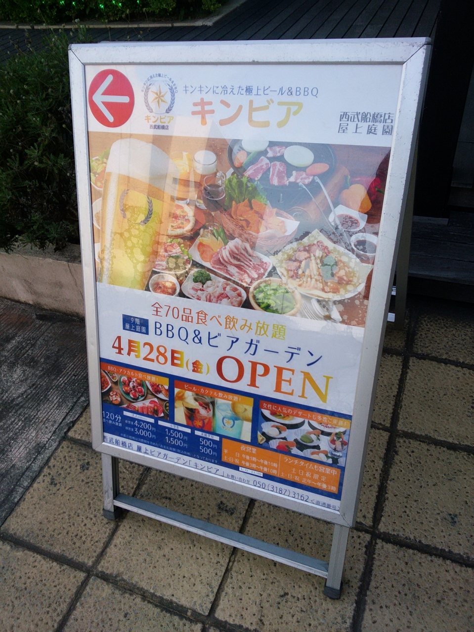 船橋駅前(南口)にある西武百貨店の屋上にある期間限定のBBQ&ビアガーデンです。天気が良く暖かい日であれば、この季節は気持ち良い気分で食事をすることができます。BBQは、120分食べ放題ですが、肉、野菜、デザートなどの種類も充実しており、家族みんなでBBQを楽しむことができ良かったです。