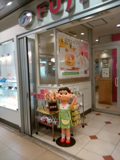新潟駅に併設する商業施設(CoCoLo新潟)にはたくさんのレストラン、カフェ、居酒屋などがありますが、不二家もそのひとつです。店頭のショーケースには、ショートケーキやチーズケーキなど美味しそうなケーキがたくさん並んでいました。カフェでは、パンケーキ、ケーキ、パフェなどを食べることもできるので休憩や新幹線の待ち時間などを利用するのもオススメなお店です。