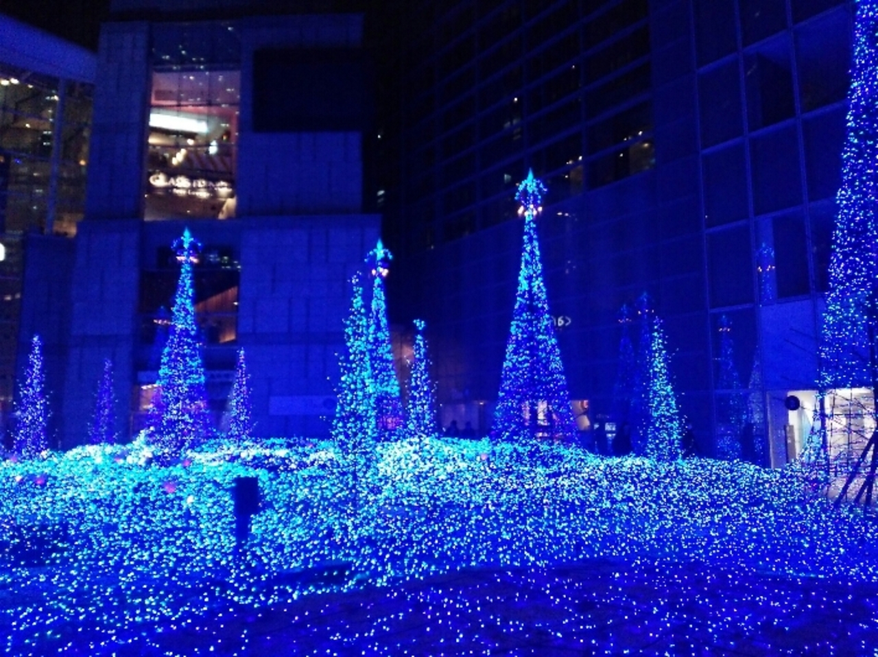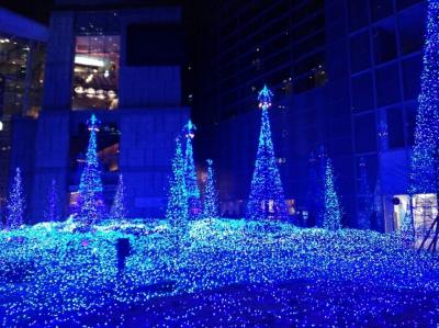 カレッタ汐留(地下2階)で開催されているイルミネーションです。青色のLEDライトを使用したイルミネーションは幻想的でとてもキレイですが、更に、20分毎にイルミネーションショーが開催されているので、これを見るのもオススメです。