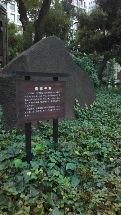 日比谷公園の幸門(内幸町交差点付近)を入ってすぐのところにある大きな石です。