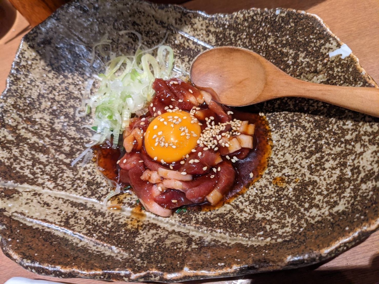 地下鉄名城線「久屋大通駅」から歩いて5分位のところにある居酒屋です。リーズナブルな値段で食べたり、飲んだりできます。お薦めのとんぺら焼き(豚バラ肉の串焼き)も美味しかったですが、鴨肉のユッケなど鴨肉料理をお手頃な値段で食べることもできました。