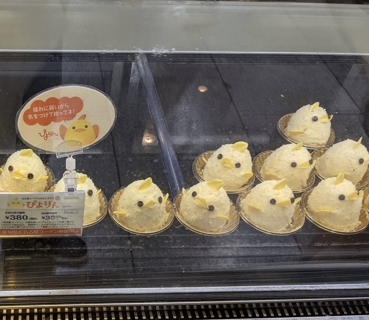 JR名古屋駅コンコース(改札外)にあるカフェです。ひよこ型のスイーツ「ぴよりん」を食べたり、買ったりできるお店です。藤井聡太棋士が対局中におやつで食べたことで話題になった「ぴよりん」はかわいいので、名古屋のお土産としてもおすすめです。なお、購入することができる時間が1日3回(10:00・14:00・17:00)と決まっており、数量も限定で行列もできるので早めに並ぶと良いです。