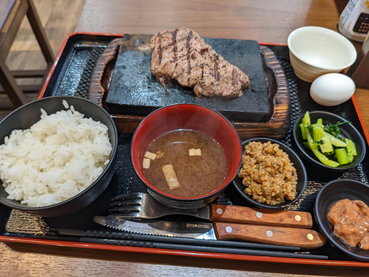 金山総合駅から歩いて数分のところにあるステーキの専門店です。セルフ方式ですが、ロース、ハラミ、ヒレステーキなどか1000円で食べることができます。しかも、ごはん、味噌汁、生玉子、そぼろ、漬物が食べ放題なのでガッツリと食べたい人にはおすすめです。ロースステーキ(180g)を食べましたが、お肉も柔らかくて美味しかったです。