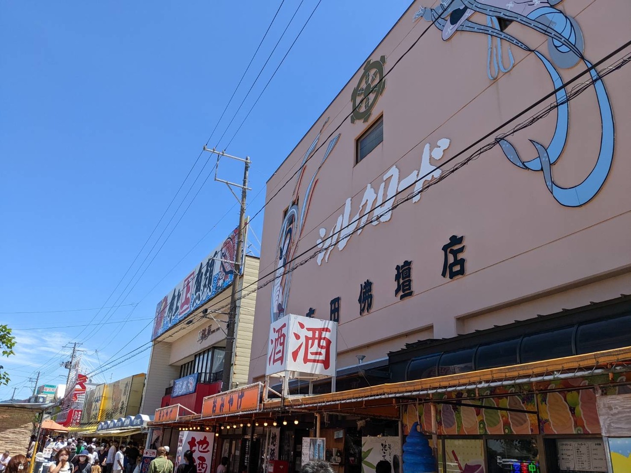 新潟市内から車で約1時間位の港町「寺泊」の「魚の市場通り」にある鮮魚店のひとつです。カニ、イカ、ホタテなど日本海で水揚げされた魚介類をお手頃な値段で買うことができるお店です。お土産にカニを買いましたが、一杯無料サービスしてもらいました。また、店頭でほ浜焼きや寺泊名物の番屋汁などを買うこともできるので、食べ歩きを楽しむこともできます。