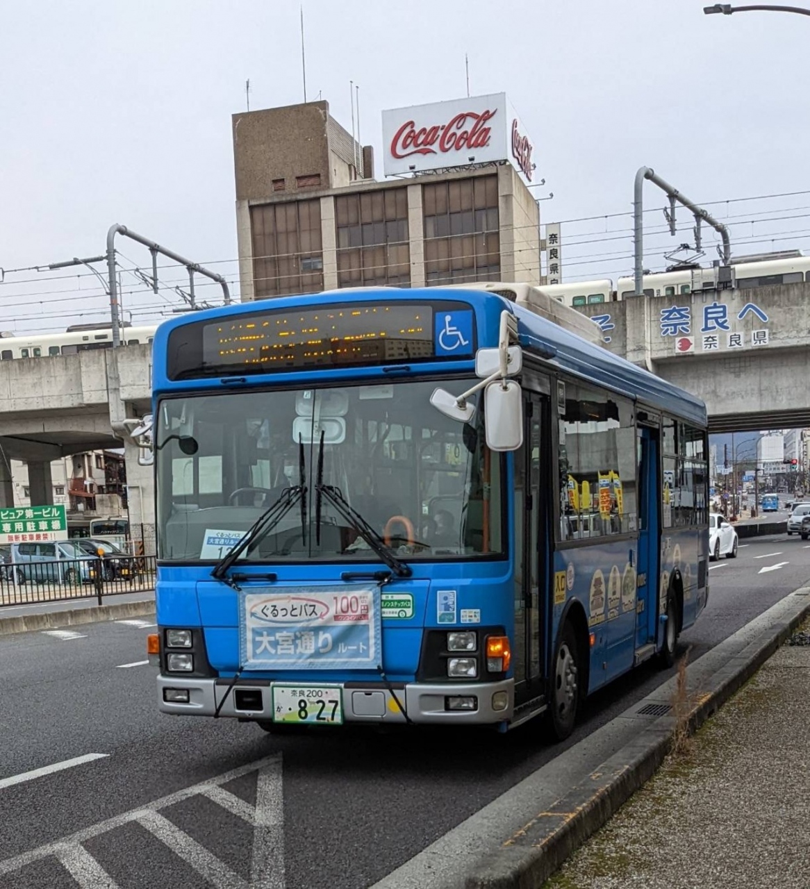 奈良公園、東大寺、平城宮など奈良市内の観光スポットを循環する路線バスです。バスの便数が少ないので、バスの時刻に合わせて観光する必要はありましたが、乗車料金が100円とリーズナブルなので、奈良市内観光の移動手段にはおすすめです。