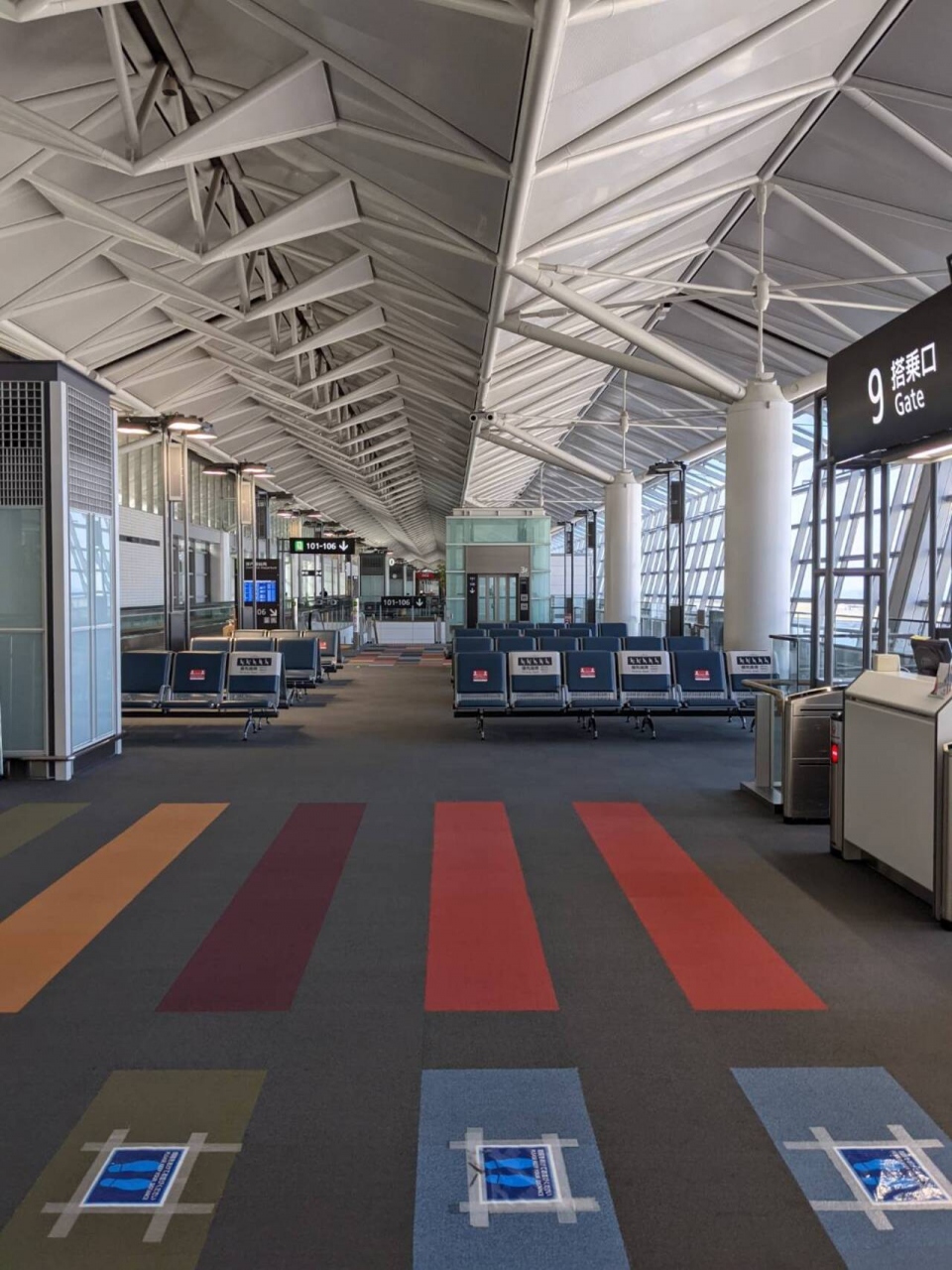 名古屋市内から電車(名鉄)で約30分程のところに「中部国際空港(セントレア)」はありました。第1ターミナルには、国際線と国内線がありましたが、国際線は、ほぼクローズ状態で静寂としていましたし、国内線も閑散としていました。国内線を利用しましたが、保安検査場も空いていたので、待つこともなく通過することができて良かったです。
