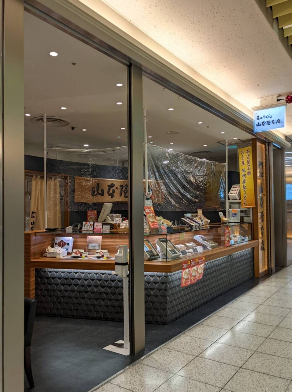 名古屋駅に隣接するエスカ地下街にある山本屋本店です。名古屋名物「味噌煮込みうどん」の老舗店で、お持ち帰りの専門店です。お持ち帰りの専門店なので店内で「味噌煮込みうどん」を食べることはできませんが、お土産に買って買えるなら品揃えも豊富なのでおすすめです。
