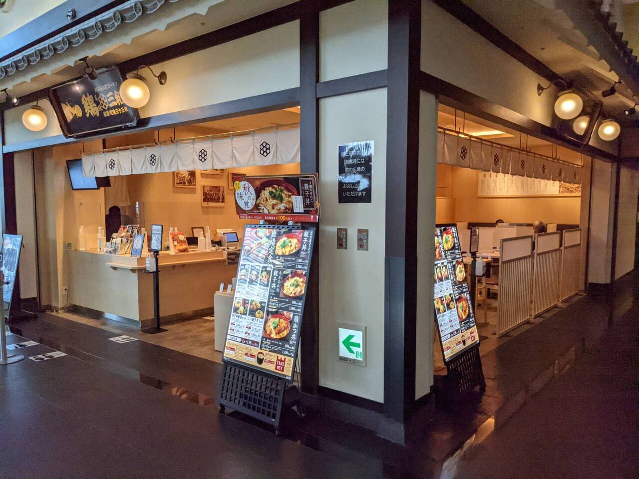 中部国際空港(セントレア)の「ちょうちん横丁」(4階)にある鶏三和です。名古屋コーチンを使った親子丼や名古屋名物の手羽先唐揚げなどを食べることができます。親子丼は、柔らかい鶏肉とトロトロ玉子で美味しかったです。