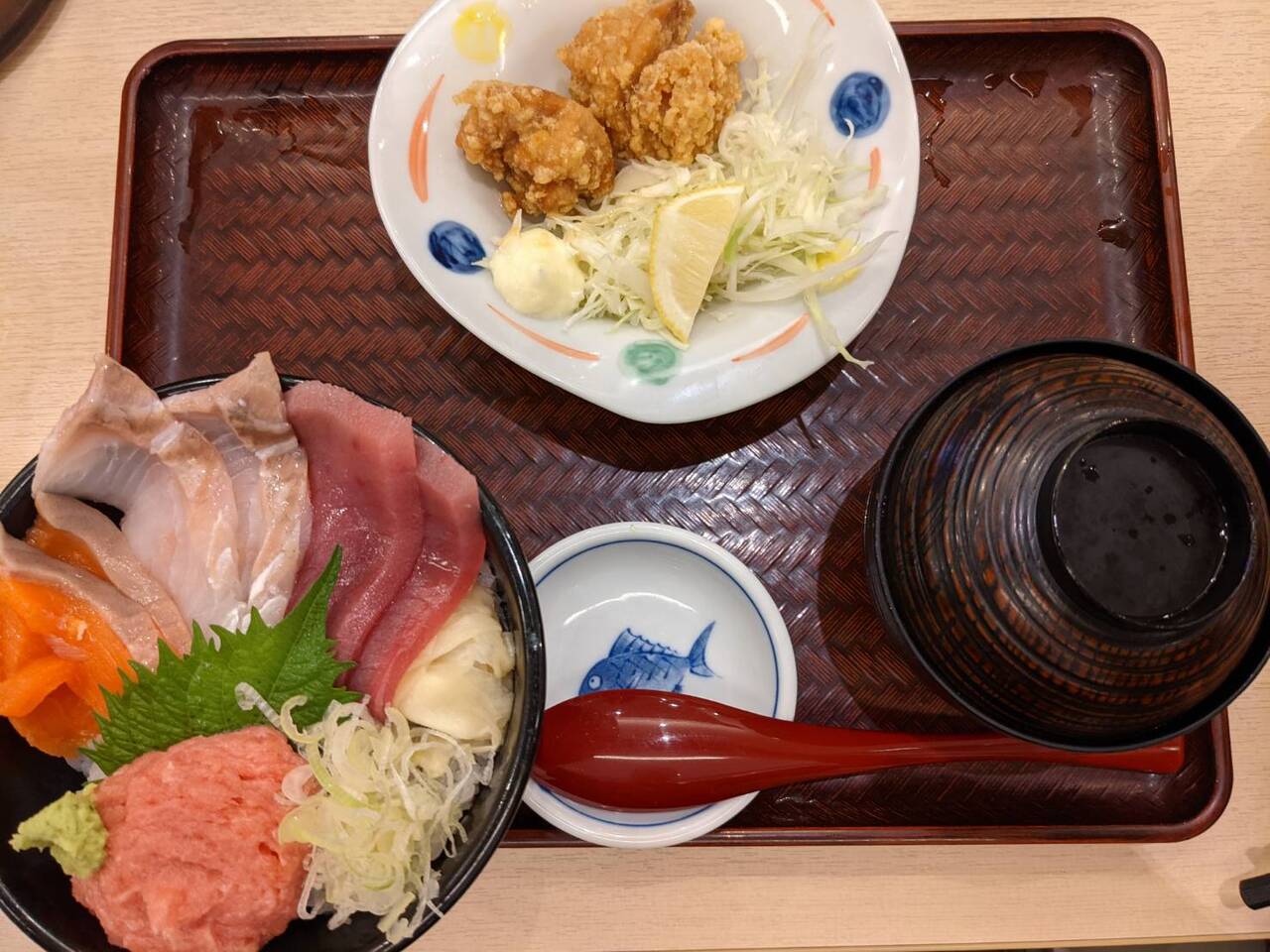 有明ガーデンのレストラン街(5階)にある海鮮料理の専門店です。リーズナブルな値段で海鮮丼などの丼ぶりや刺身、焼き魚定食などを食べることができます。日替わり丼とから揚げセットを食べましたが、丼ぶりはマグロやサーモンなどの刺身がたっぷりと乗っていて美味しかったです。