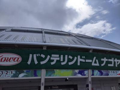 ナゴヤドーム前矢田駅から歩いて5分程のところに「バンテリンドーム(名古屋ドーム)」はありました。中日ドラゴンズのホームグラウンドだけあって試合開催日だったのでドラゴンズファンで賑わっていました。直ぐ脇にはイオンもあるので、ここで試合観戦前の食料調達もできます。