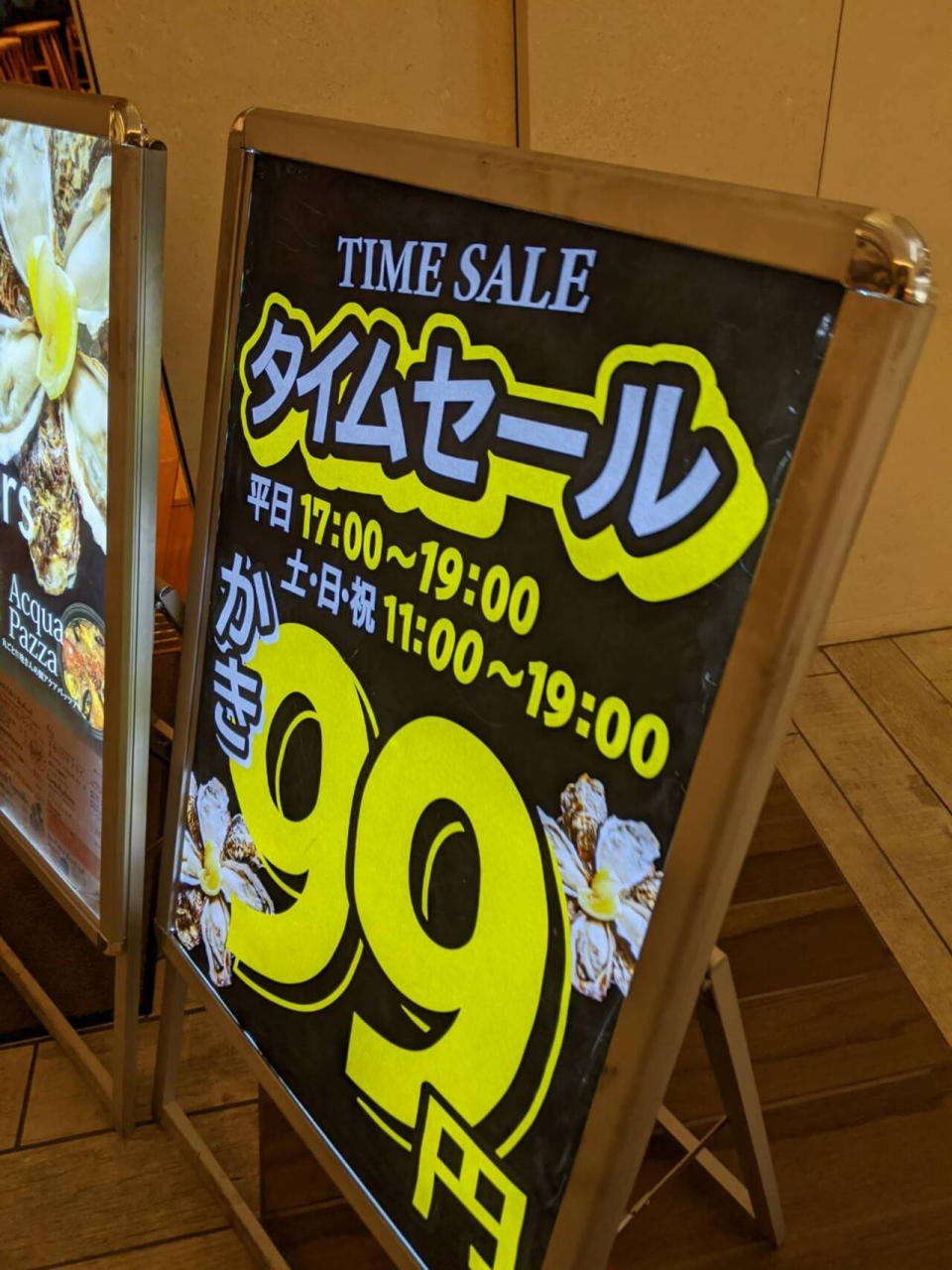 JR田町駅と直結の複合商業施設(ムスブ田町)にあるオイスターバーです。カジュアルでお洒落な雰囲気のお店でした。タイムセール(平日17時~19時、土日祝11時~19時)なら、新鮮で美味しい牡蠣が1粒99円とお得です。